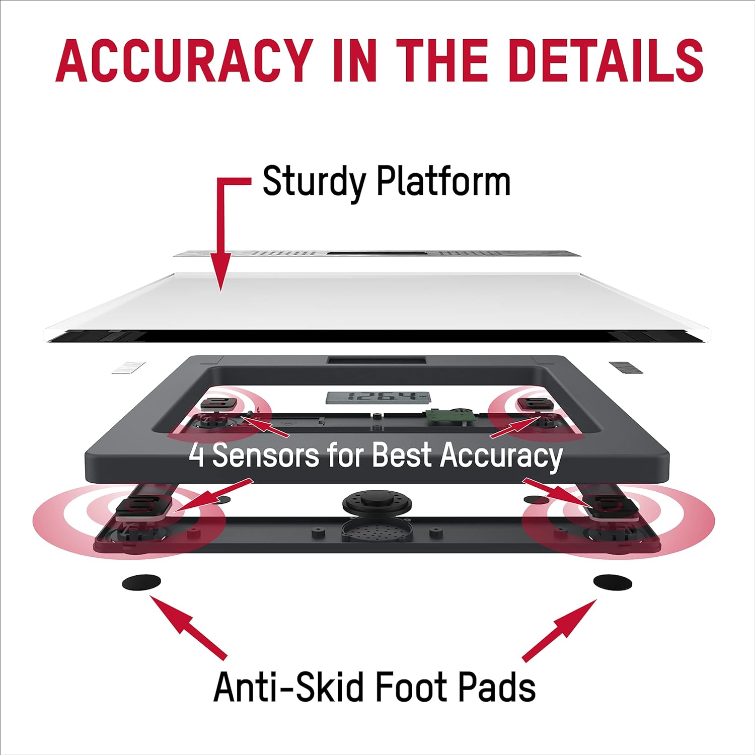 Designed for accessibility in mind, listen to weights announced in pounds in English or in kilograms in Spanish, Greek, German, or Croatian. Built to accommodate up to approximately 440 pounds (200 kilograms), the tempered glass scale platform features stainless steel accents for a clean, sleek look.